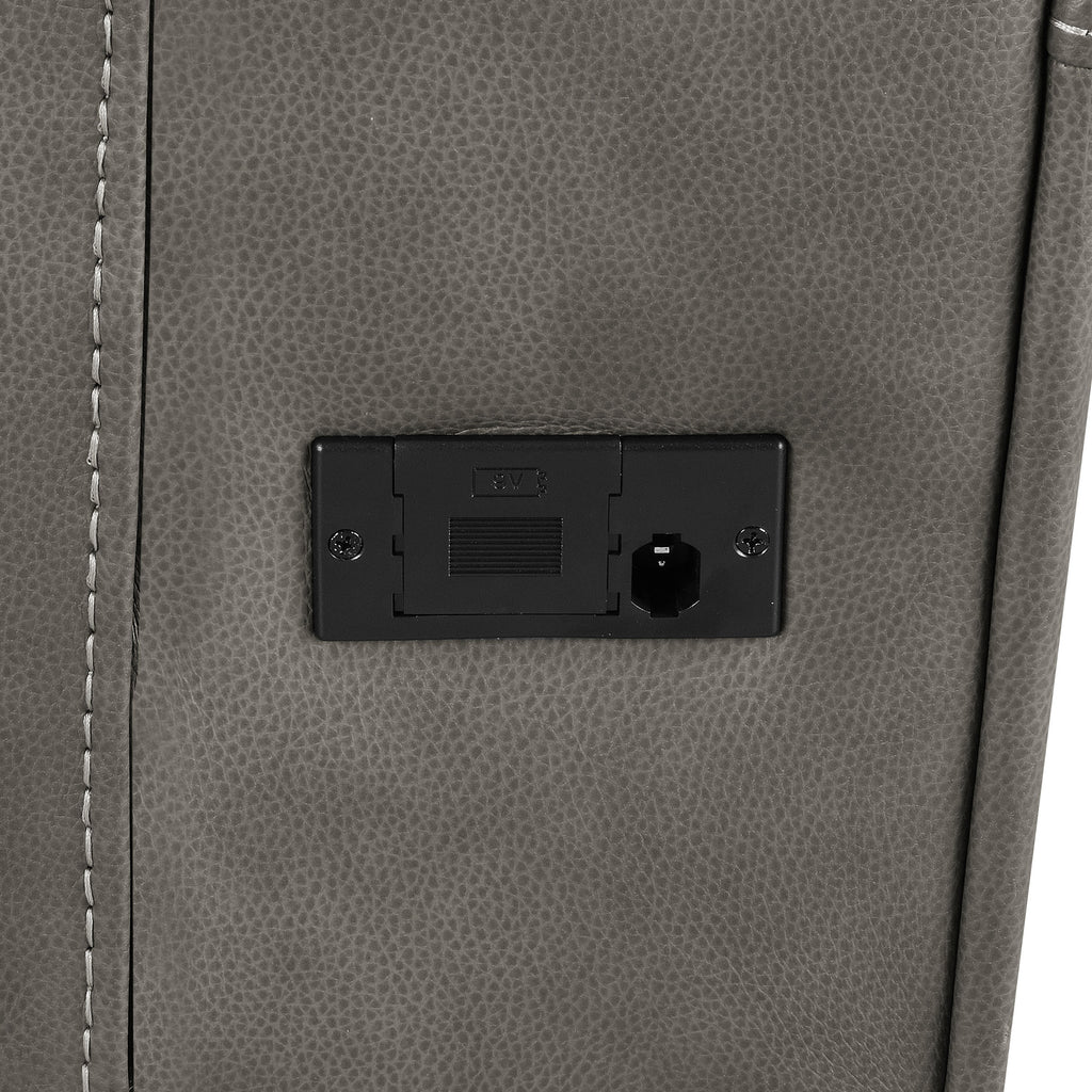 A sanctuary of comfort and thoughtful design, this triple power reclining sofa turns the everyday into something extraordinary. Upholstered in soft leatherette with contrast stitching, its sculpted silhouette offers both structure and serenity. Sink into deep, supportive cushions while power recline, headrest, and lumbar settings respond with effortless grace. A drop-down console reveals hidden storage and ambient LED lighting, while the sleek control panel—complete with dual USB ports—keeps everything within reach. Even in moments of stillness, a rear power connection and emergency battery option ensure comfort never loses power. Key Features: • Triple power reclining sofa with power headrest, power lumbar, and smooth recline functionality • Drop-down center console with lift-top storage and dual LED reading lights • Control panel includes USB-A and USB-C charging ports and a home button for quick reset • Rear AC power socket allows easy wall plug-in and houses 9V battery for emergency power-down • Armrests feature hidden compartments with built-in stainless steel cup holders • Charcoal leatherette upholstery with contrast stitching offers soft texture and modern style