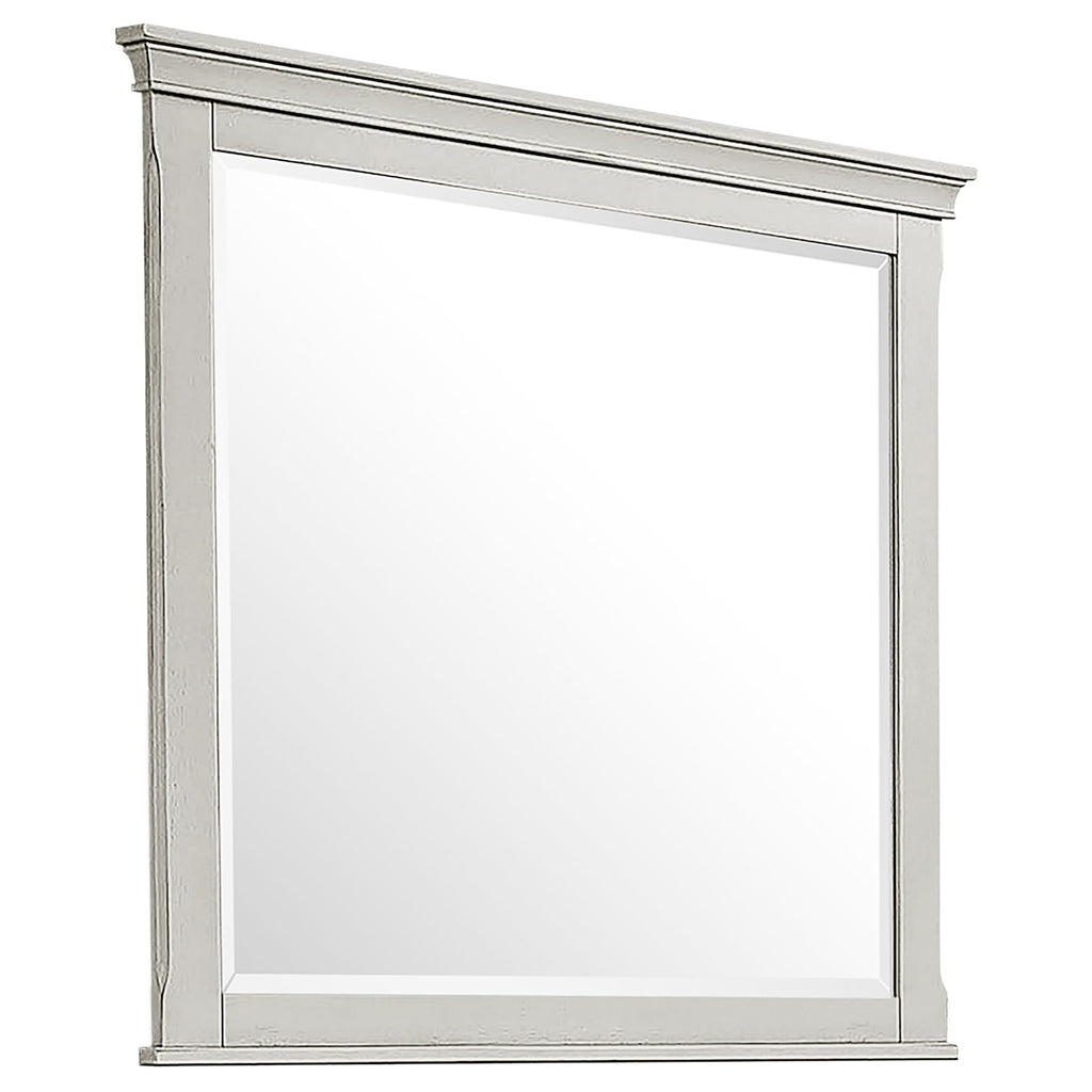For stylish practicality and convenience, this superb 4-piece bedroom set from the Franco collection has what it takes. The impressive bed has an imposing headboard and low footboard with exquisitely detailed panels and design. The drawers on the nightstand and dresser operate with soft-closing guides that offer convenience and durability. The nightstand also includes a pull-out service tray with convenient cord access to keep all your gadgets fully charged. A rectangular mirror rounds out the set, which is warmly finished that's sure to match any bedroom decor. Key Features: • Spend every day in a coastal resort paradise with the Franco Collection • Warm painted finish with antique white accents and wire-brushed white oak veneer • Soft-closing door hinges maximize durability and ease of use • Cord access for easy charging featured in nightstand • Nightstand offers pull-out service tray
