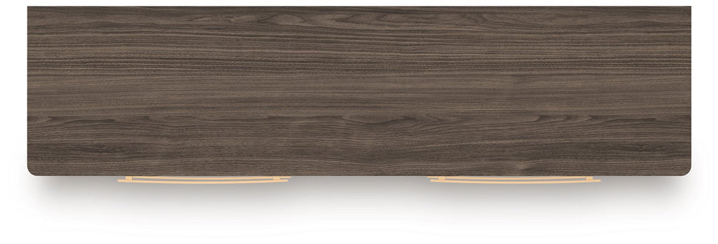 • Dresser with two-tone finish (dark brown finish over replicated walnut grain; matte white finish)