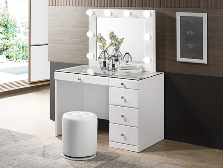 • Vanity Set Includes Vanity Desk, Mirror and Swivel Stool