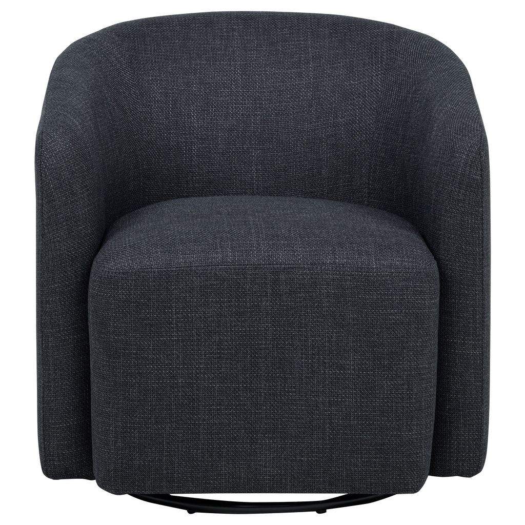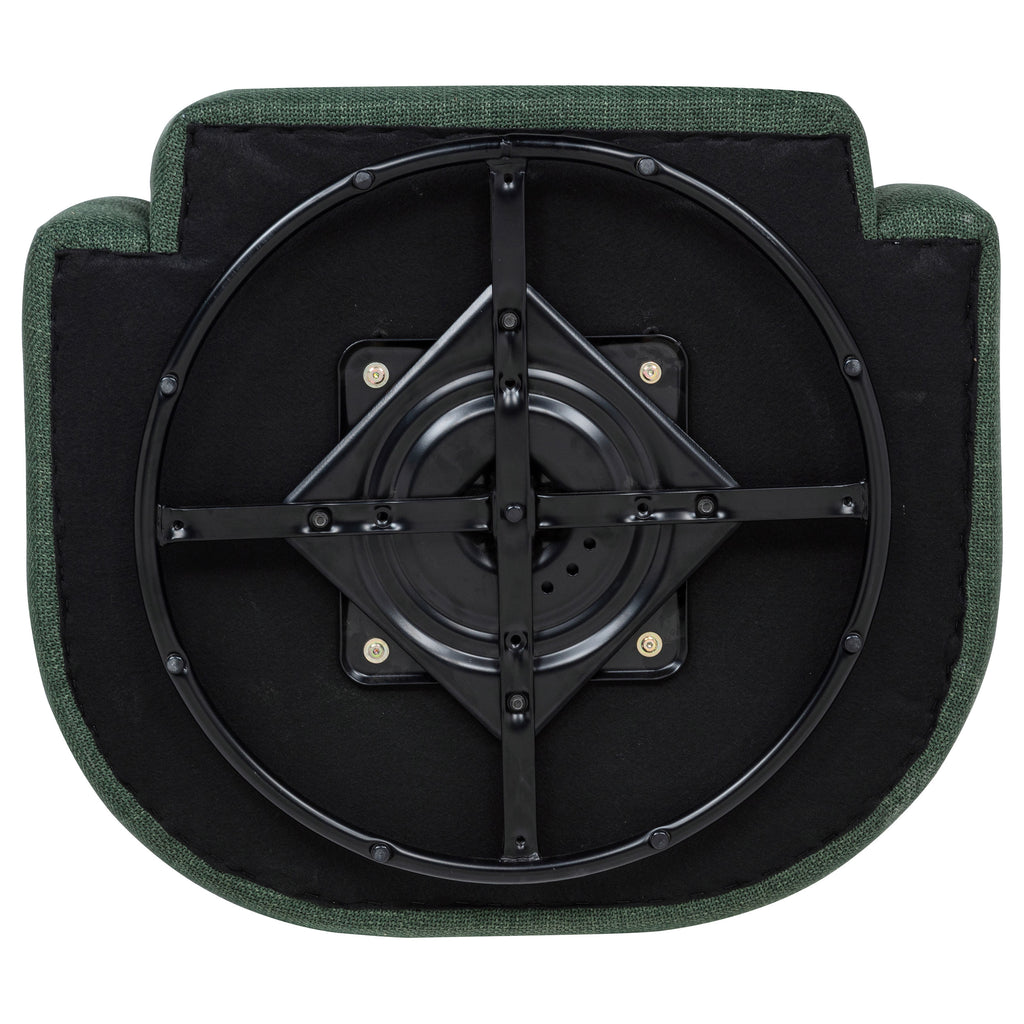 Compact comfort takes a refined turn in this swivel accent chair. Its rounded barrel back and seamless upholstery wrap the frame in sculpted softness, while a hidden swivel base adds dynamic functionality. Tailored for modern lounging, the foam-padded seat delivers support without bulk. With a space-conscious footprint and versatile silhouette, it effortlessly balances form and function in small living spaces or cozy nooks. Key Features: • Swivel accent chair with barrel-style back for modern lounge or reading nook use • Green fabric upholstery adds organic color and soft woven texture to the frame • Hidden swivel base allows smooth, quiet movement for everyday flexibility • Rounded arms and seat design enhance comfort in a sculpted contemporary form • Supportive foam cushion offers everyday softness in a space-saving size • Crafted from polyester fabric, foam padding, engineered wood, and a durable metal swivel mechanism