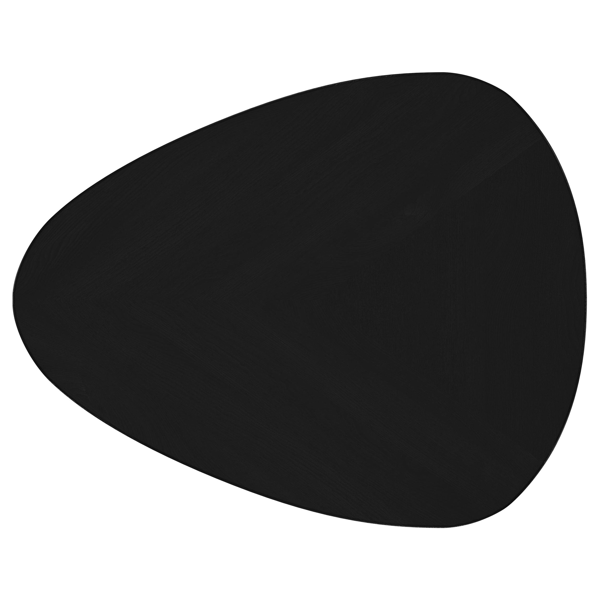 Elevate your living room with this sleek coffee table set, blending modern style with timeless craftsmanship. Handcrafted from solid mango wood, each table boasts a smooth black finish that emphasizes its triangular tabletop design with softly rounded corners. The splayed iron legs feature a black powder-coated finish, offering sturdy support with an airy aesthetic. Perfect for creating a cohesive and contemporary centerpiece, this occasional set combines durability and elegance effortlessly.