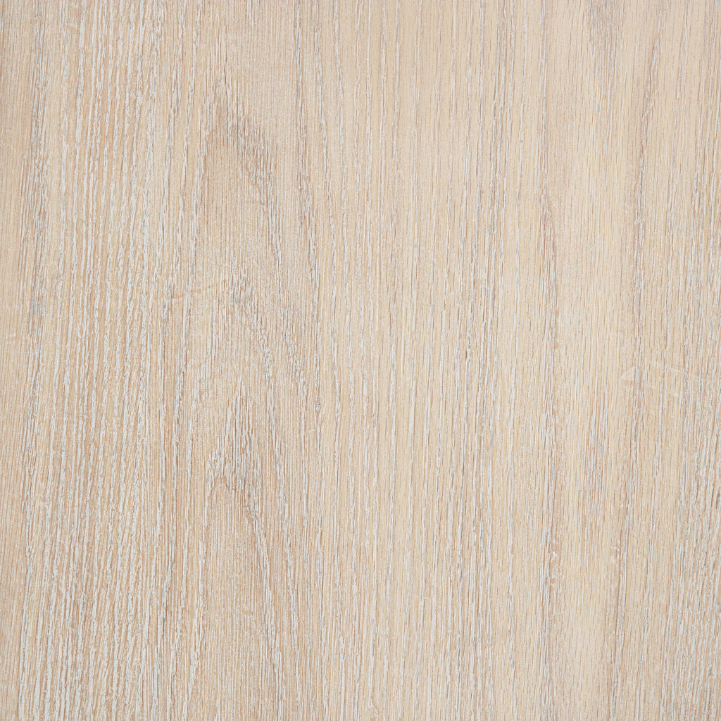 A quiet invitation to rest, this panel bed evokes the calm of coastal mornings and the grace of timeless design. Its tall headboard, wrapped in creamy fabric and framed by washed oak, offers a gentle contrast of texture and tone. A delicate row of nailhead trim glimmers like a finishing touch, while raised panel detailing at the footboard adds poised refinement. Crafted with care from oak veneer, poplar, and soft upholstery, this bed brings serenity and structure to the heart of the bedroom. Key Features: • Queen panel bed with cream upholstered headboard and tailored nailhead trim • Washed oak frame brings soft wood grain texture and coastal-inspired warmth • Tall headboard design adds graceful height and timeless visual impact • Raised panel footboard enhances structure with classic architectural detail • Requires foundation beneath mattress for complete support • Crafted from poplar, engineered wood, oak veneer, and fabric for lasting elegance