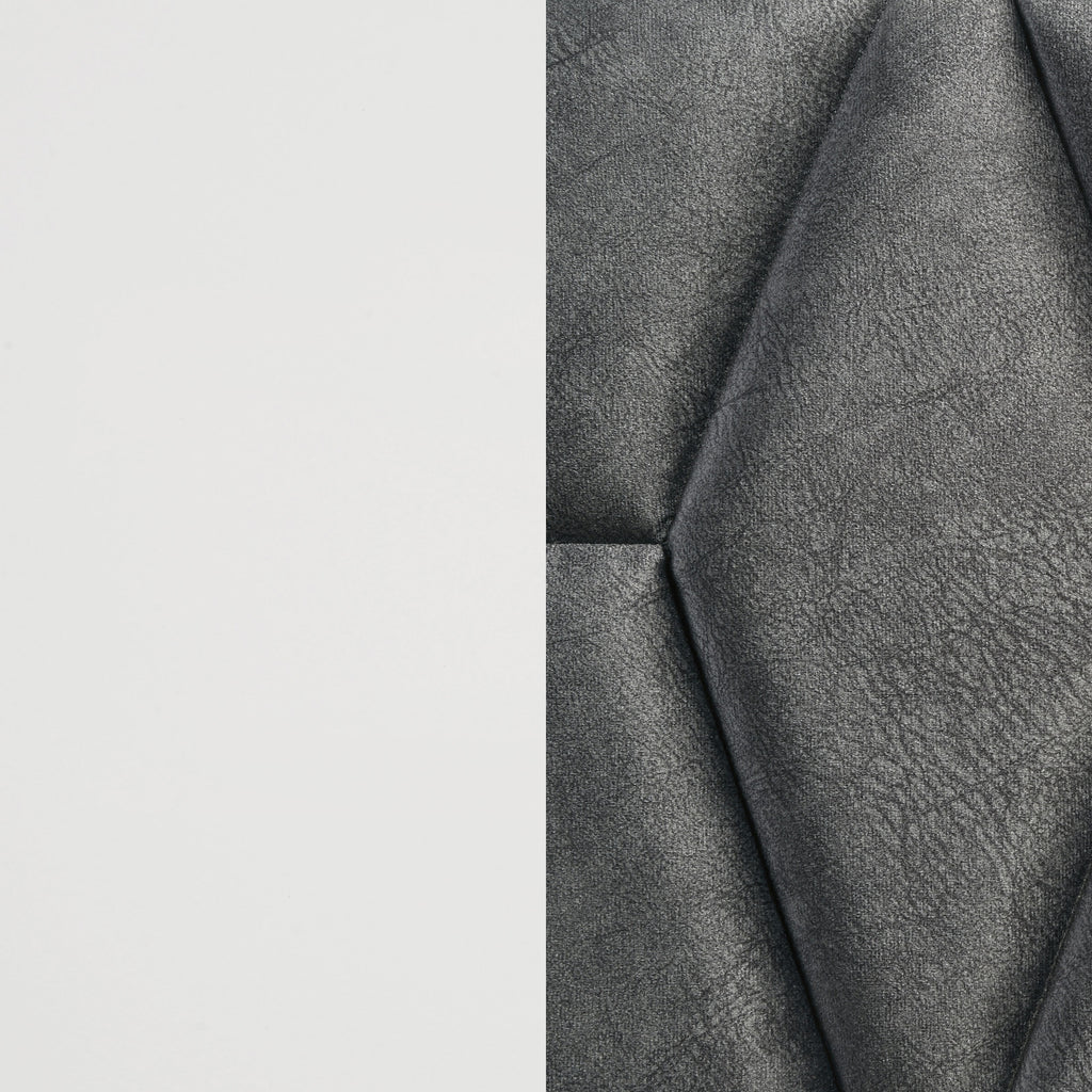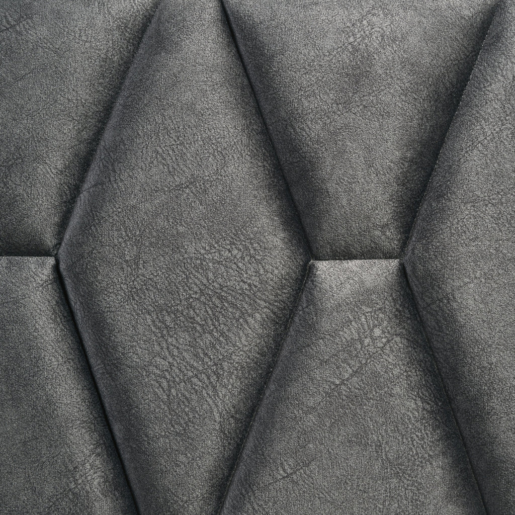 Bring geometric detail to your bedroom with the charming hexagon motif featured on this modern upholstered bed. Offering a contemporary look and feel, it creates a stylish focal point with its rich contrast of color and texture. The padded headboard offers excellent comfort and dark gray fabric upholstery. A streamlined wood frame adds a bright white finish to the rectangular head and footboards, creating an open, airy look. This stylish bed is complete with black accents in the base of the footboard and requires a foundation for use. Key Features: • A modern bed creates a stylish focal point with an upholstered headboard and sleek silhouette • Elongated hexagonal tufting creates a bold look in a padded headboard with dark gray fabric • White finish is crisp and bright, offering modern appeal and an open, airy feel • Black accents create a sense of depth and contrast in a contemporary bedroom • A foundation is required for use with this modern bed, which has a 600-pound weight limit