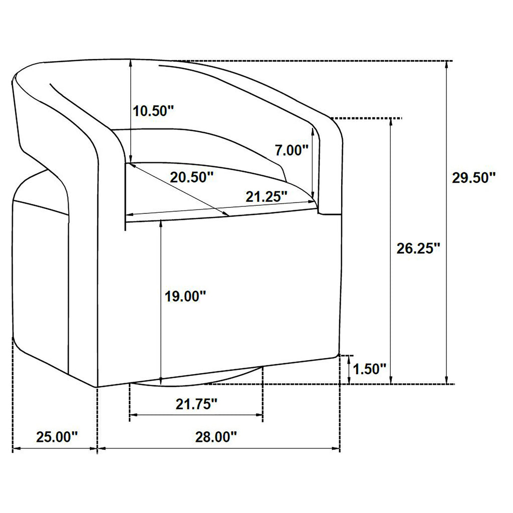 Curved form meets effortless movement in this modern swivel accent chair. With a rounded open back and tailored seat, it delivers sculptural balance and all-around comfort. Upholstered in textured boucle and built on a hidden swivel base, it glides smoothly to support dynamic living. Its compact footprint and graceful silhouette make it ideal for layering into lounge corners, reading nooks, or open floor plans seeking softness and versatility. Key Features: • Swivel accent chair with round silhouette and open barrel back for modern function • Brown boucle upholstery creates a cozy tactile surface with a neutral visual tone • Concealed swivel base rotates smoothly for adaptive lounge or conversation use • Low-profile wraparound arms bring sculptural softness to the structured form • Foam-padded seat offers support and comfort for compact reading or lounge zones • Crafted from boucle fabric, foam cushioning, metal swivel base, and plywood frame